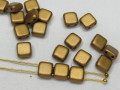 チェコビーズ フラットスクエア 2ホール 6ミリ (20ヶ入り) マットメタリックゴールド