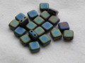 チェコビーズ フラットスクエア 2ホール 6ミリ (20ヶ入り) マットアイリスグリーン