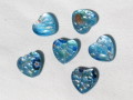 ベネチアン風ガラス 模様付きハート 約16mm (2個入り) ブルー(水色)