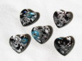 ベネチアン風ガラス 模様付きハート 約18mm (2個入り) 黒(ブラック)