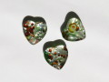 ベネチアン風ガラス 模様付きハート 約20mm (2個入り) グリーン