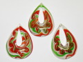 ハンドメイドガラス シズク型 約52×38mm (1個入り) グリーン&オレンシ゜