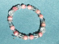 天然石ブレスレット 内径16~16.5cmタイプ インカローズ(8ミリ・12玉) クリスタル(10ミリ・2玉) カットクリスタル(8ミリ・6玉) 他 情熱を呼び覚まし、バラ色の幸福をもたらす、と言われているインカローズとクリスタルの組み合わせで作られた、可愛さと、豪華さを併せ持ったブレスレットです。