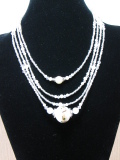 20ミリのトンボ玉の両側に合成のキャッツアイを置いた、アクリルのパールとビーズで製作した四連のネックレスです。(重サ 35g)