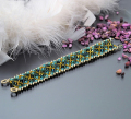 主な材料:スワロフスキー#5301番2種合計98粒(トルマリンAB及びパシフィックオパール)、#5000番2粒、丸小ビーズ使用。
