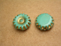 チェコビーズ ヒマワリ(2ホール) 12ミリ (4ヶ入り) ターコイズ
